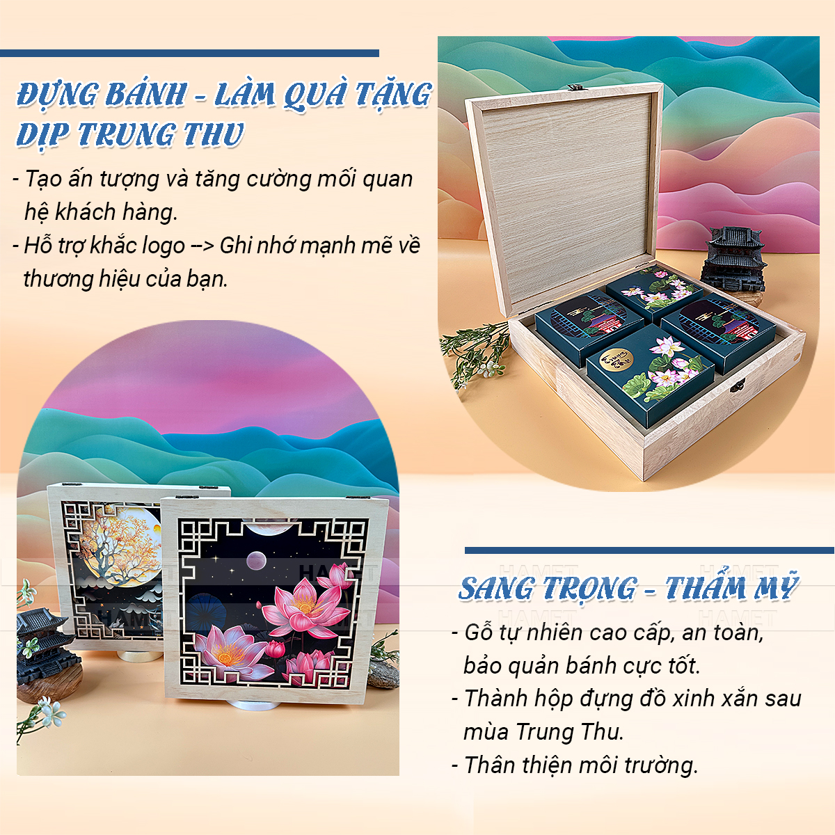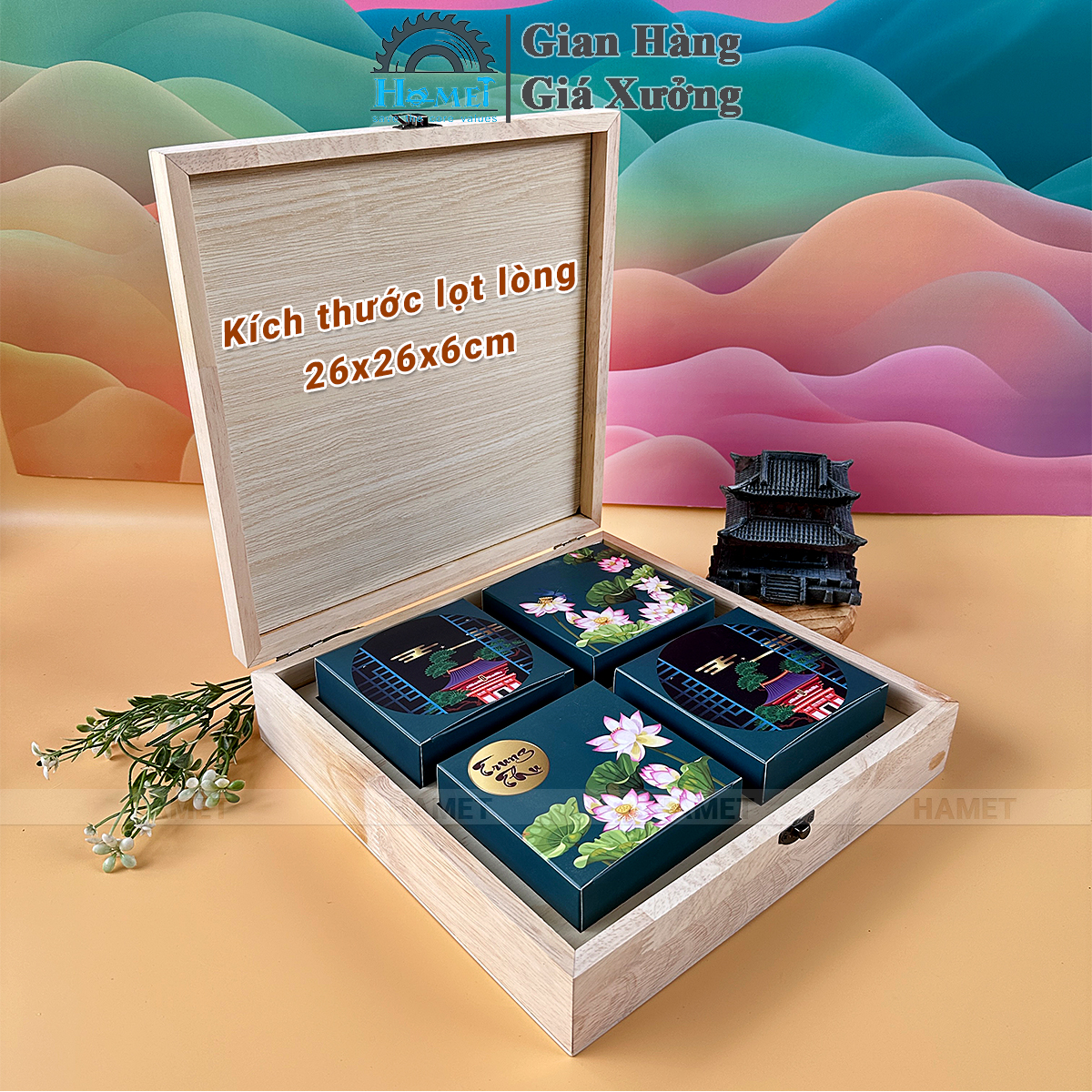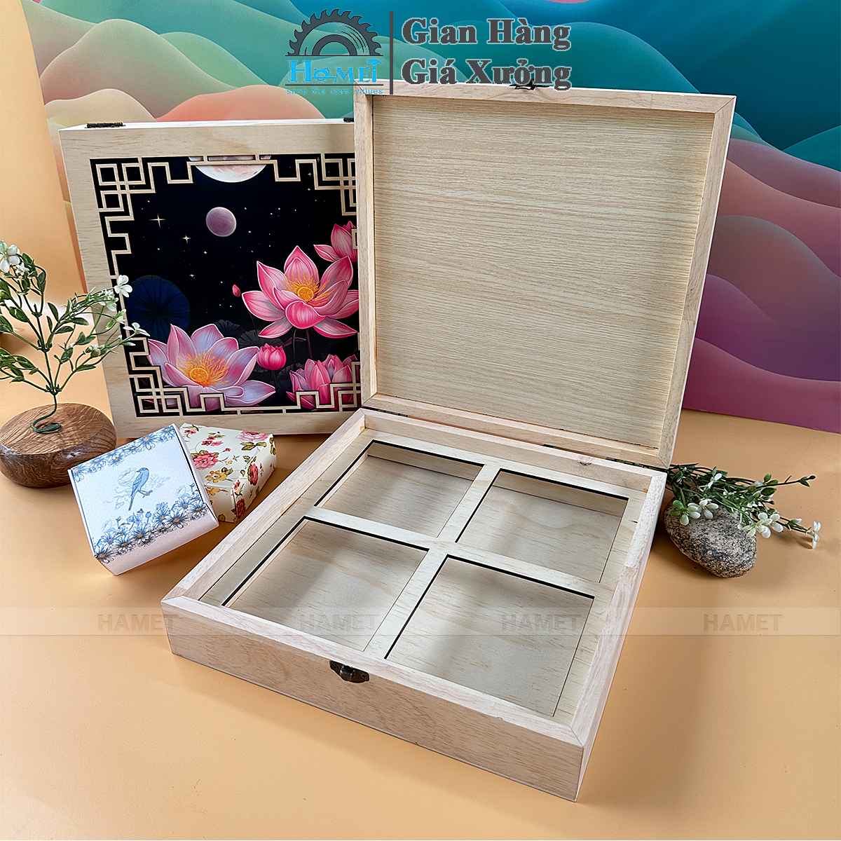 Hộp Gỗ Đựng Bánh Trung Thu Đẹp 4 Ngăn