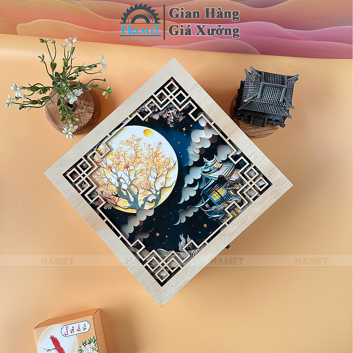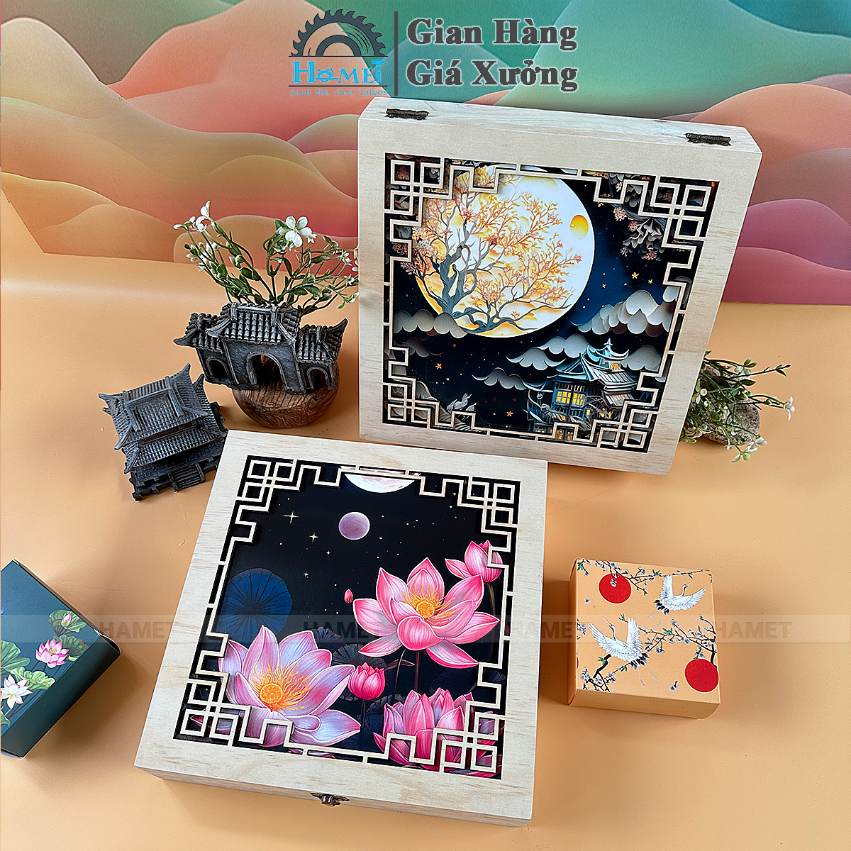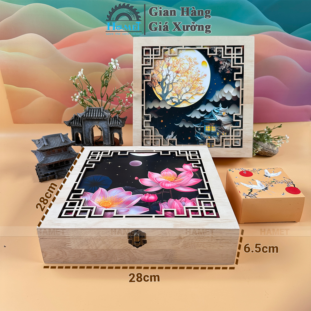 Hộp Gỗ Đựng Bánh Trung Thu Đẹp 4 Ngăn