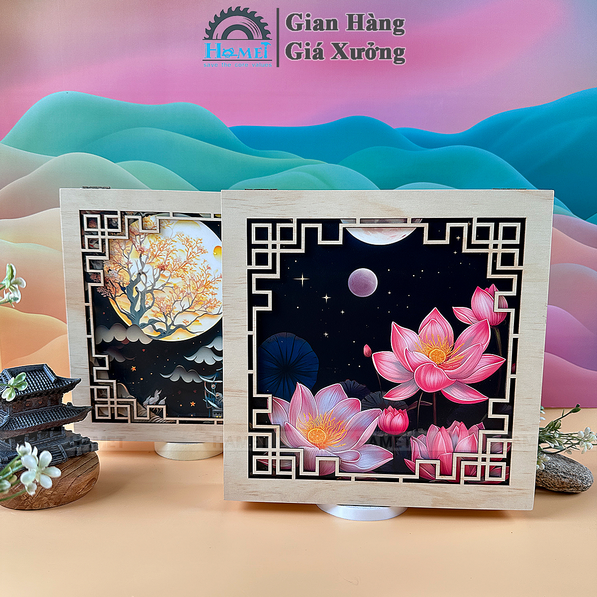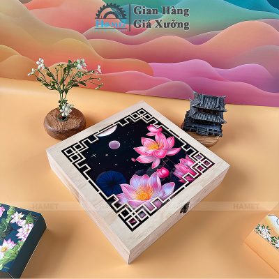Mặt hộp 2 lớp gồm – mặt gỗ cắt laser và mặt decal in họa tiết sắc nét