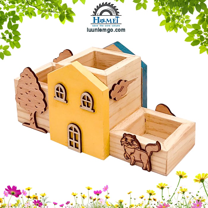 Hộp bút gỗ đẹp để bàn nhiều họa tiết, đa năng