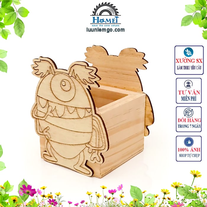 Hộp bút gỗ để bàn nhiều họa tiết, đa năng