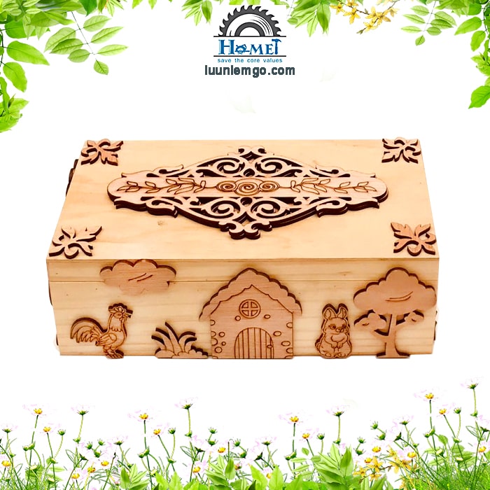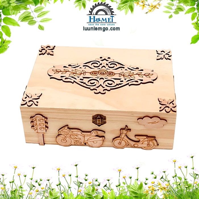 👉 Hộp thiết kế nắp mở, trên mặt hộp được khắc họa tiết đẹp mắt