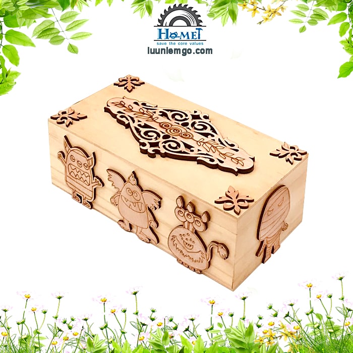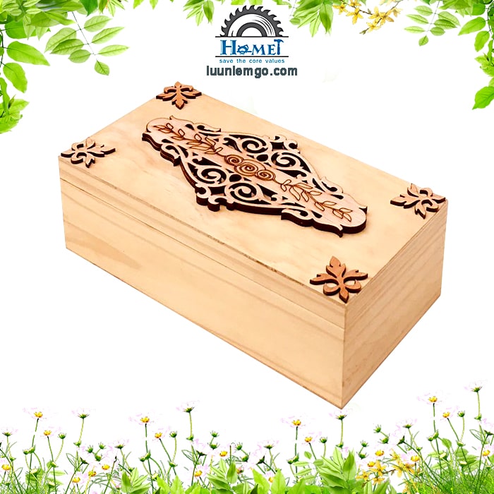 👉 Hộp thiết kế nắp mở, trên mặt hộp được khắc họa tiết đẹp mắt