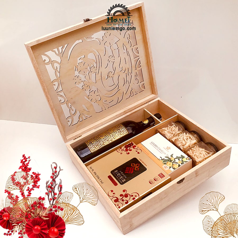 Hộp gỗ đựng quà tặng tết khắc Laser MS04