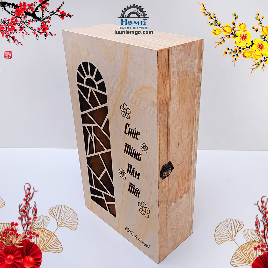 Hộp gỗ đựng quà tặng tết khắc Laser MS05