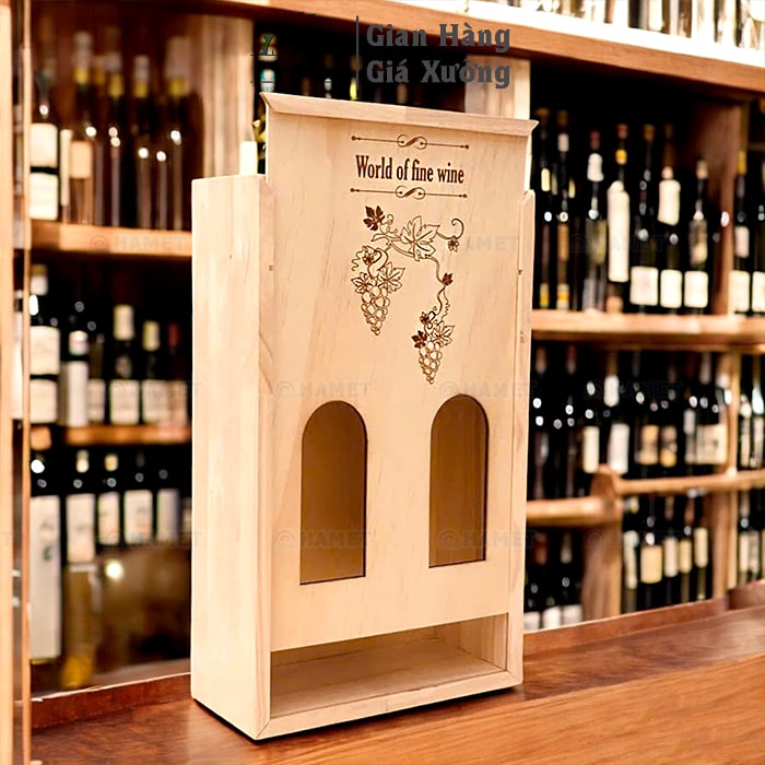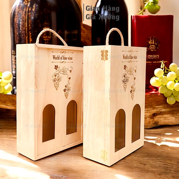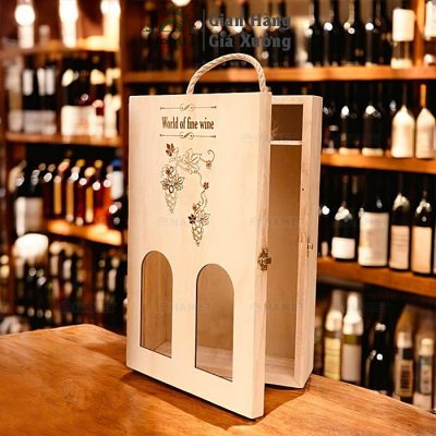 Hộp gỗ giá rẻ – HỘP RƯỢU BẰNG GỖ – LOẠI 2 CHAI – THIẾT KẾ SANG TRỌNG, ĐỘC ĐÁO