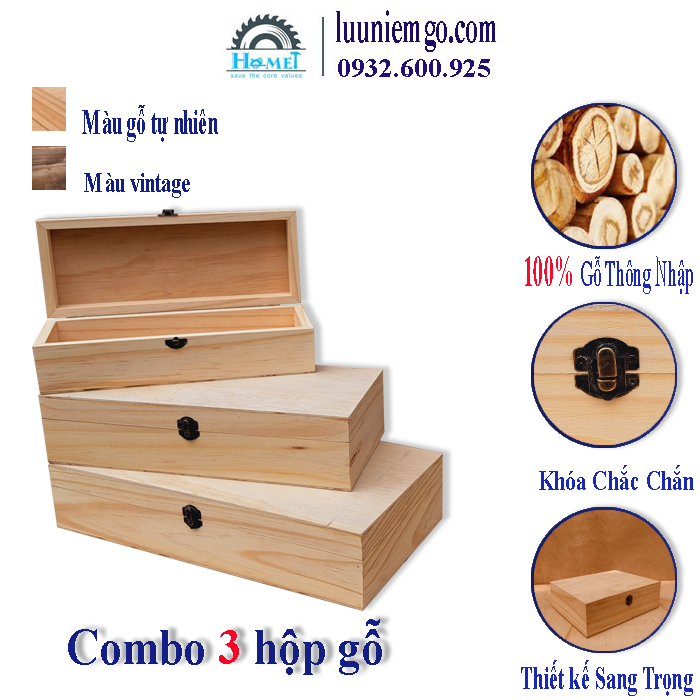 HỘP GỖ ĐẸP – GỖ THÔNG NHẬP. Thiết kế sang trọng có khóa và bản lề giúp bảo quản tốt sản phẩm bên trong cũng như nâng cao giá trị món quà tặng.