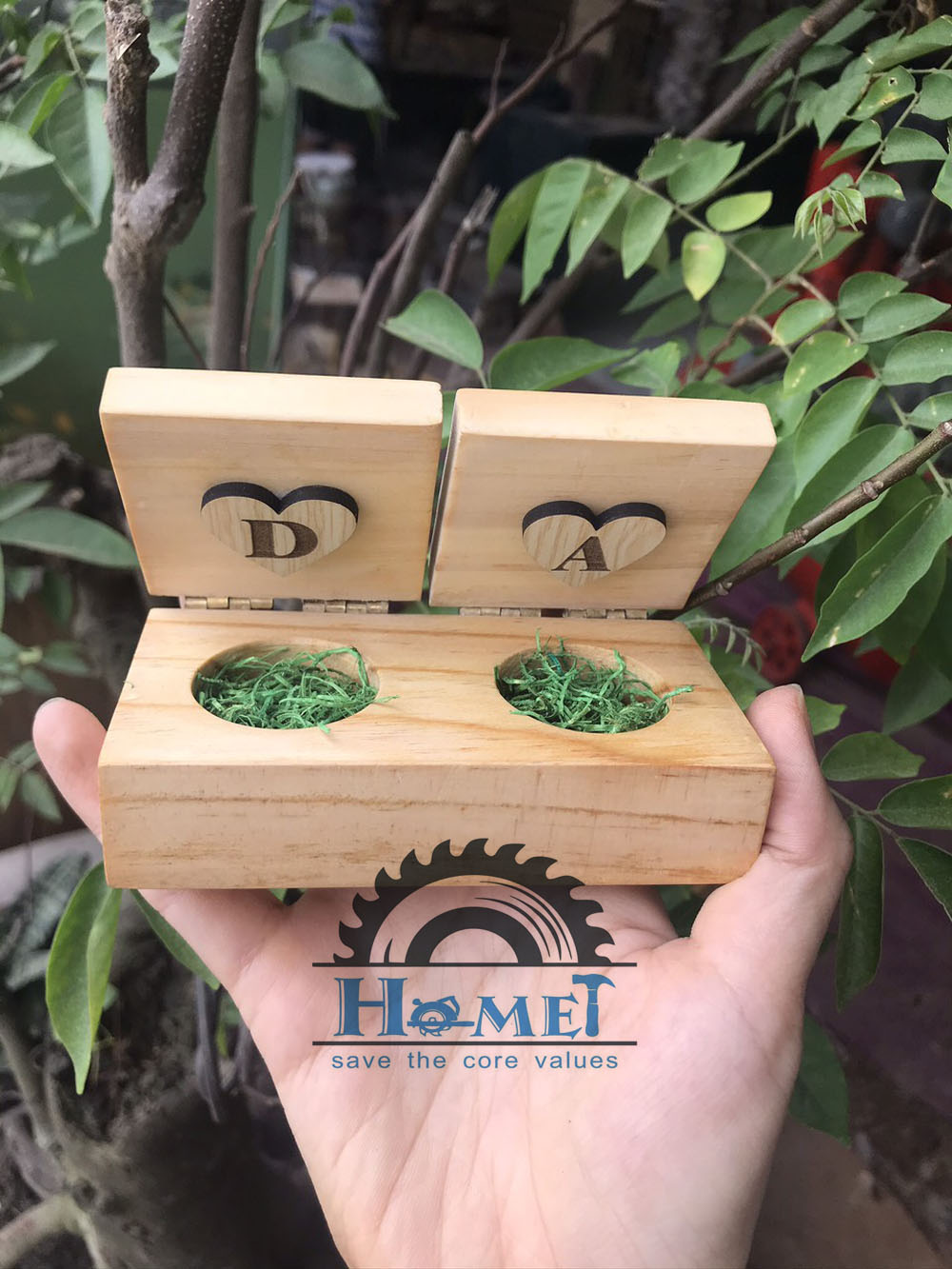 Hộp gỗ đựng nhẫn đôi, Hộp đựng nhẫn độc lạ, Hộp đựng nhẫn bằng gỗ độc đáo