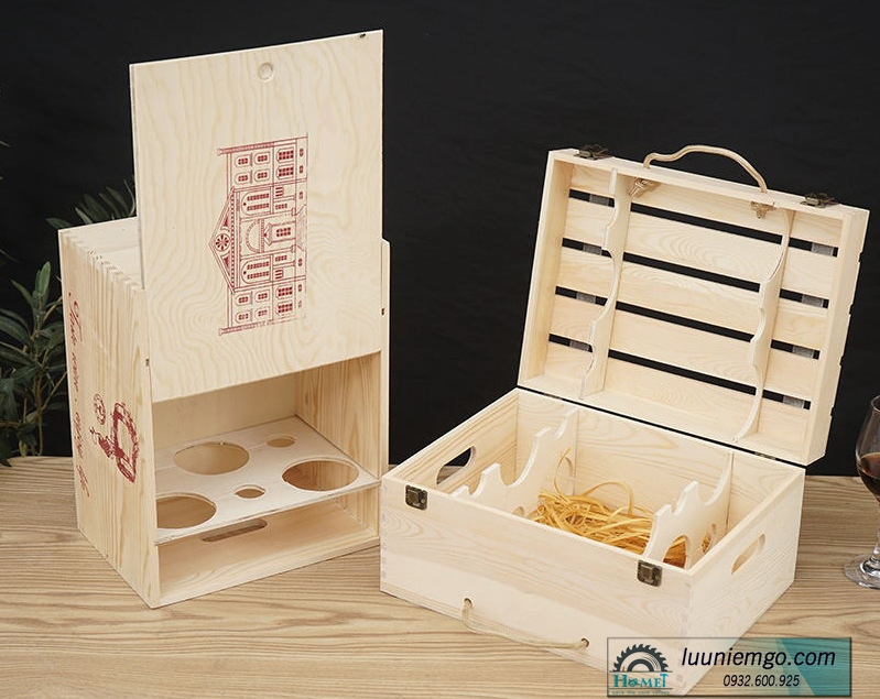 Hộp để rượu vang bằng gỗ là sản phẩm đi kèm sang trọng và độc đáo bên cạnh mỗi chai rượu hảo hạng. Chiếc hộp vừa có tác dụng bảo quản rượu, vừa giúp nâng tầm giá trị món quà tặng.