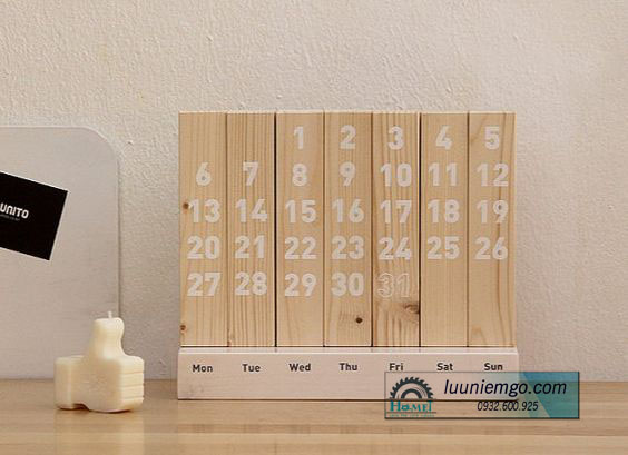 Lịch vạn niên bằng gỗ: có thể kết hợp với cắm bút hoặc đồng hồ